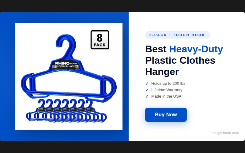These are the most common and versatile heavy duty hangers for camping. They hang over a standard closet rod, a vehicle’s grab bar, an overhead PVC rack in a garage, or a branch at a campsite. The Original Tough Hook Hanger is a prime example built from high-impact polypropylene plastic with a patented I-beam construction and a load capacity exceeding 150 lbs. These are ideal for hanging jackets, sleeping bags, packs, and layered clothing before, during, and after a trip.